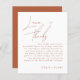 Coloque essas placas na configuração de mesa para cada um dos seus convidados na sua recepção de casamento. Cartões apresentam script de caligrafia rustic terracotta Love + Obrigados com mensagem especial.