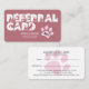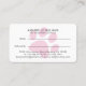 O cartão de referência moderno, concebido para clínicas veterinárias, grupos de animais de estimação, ambulantes para cães, serviços de cuidados de animais de estimação, etc., apresenta um roteiro de tipografia ''cartão de referência'' com ícones de animais sobre fundo rosa de ouro, desconto de referência e impressão de pata na frente. Personalize com mais detalhes no verso.