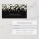 Cartões de referência de chic apresentam sua oferta de referência em branco sobre um fundo preto com uma borda superior de luzes luminosas de chavão em tons de branco e champanhe. Adicione seus termos de referência e informações de contato ao lado inverso, com espaço para os nomes de seus clientes.