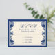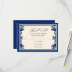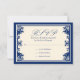 Um elegante design de rolagem florescente da vintage está representado neste cartão rsvp formal do casamento. Apresentado em marinho azul e creme de marfim.