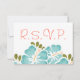 Estes CARTÕES DE RESPOSTA RSVP RSVP, de hibisco AZUL, bonito e moderno, em tons azuis, amarelos, ORANGE CORAL e verdes são perfeitos para um havaiano, praia ou luau tropical temido WEDDING OU CHÁ DE PANELA OU FESTA DE NOIVADO. Trabalho de arte © Chrissy H. Studios, LLC. Todos os Direitos Reservados.