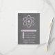 Cartão de Resposta de Casamento Atômico, bonito e nerd, com um símbolo atômico simples na lavanda, em um fundo de aparência de quadro. Este cartão RSVP de casamento, geek e divertido, é perfeito para o casal de entusiastas da ciência! Fácil de personalizar, basta adicionar os detalhes do seu casamento nos espaços fornecidos. Clique em "Personalizar" para encontrar mais opções de personalização.