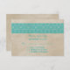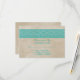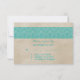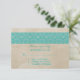 Cartão RSVP Rustic Lace Wedding Simples e elegante com um papel texturizado vintage parece fundo e um padrão de renda doce e delicado em turquesa. Fácil de personalizar, simplesmente adicione seus detalhes de casamento. Clique em "Personalizar" para encontrar mais opções de personalização.