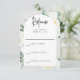 Nossa Placa RSVP de Casamento Floral Bloom White é parte de nossa Coleção de Casamentos Bloom e apresenta uma bela buquê de rosas brancas e o hálito do bebê por trás de um arco com suas opções de resposta RSVP. Este convite de casamento é perfeito para primavera, verão, outono e casamentos no inverno.