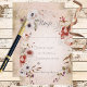 Este design de carta de resposta do casamento apresenta um belo fundo cor-de-rosa pincelado e antigo cor-de-rosa e ouro distante, com um delicado fundo rosa, marrom, branco, roxo e verde de cor verde. É romântico com um toque de safra. Criada pela Simply Farmhouse Press, é parte do Romântico Rosa rosa Dourado Forno Floral Suite de cartas.