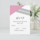 Cartão RSVP de Stripe Geométrica Moderna e moderna com triângulo rosa e sotaque fino. Este simples e elegante cartão de resposta está configurado para ser facilmente personalizado com as suas informações de casamento. Localize mais opções de personalização clicando em Personalizar.