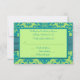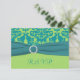Este cartão RSVP verde de maçã e azul-turquesa tem uma fita IMPRIMIDA SOBRE e broche de joia que corresponde ao convite de casamento mostrado abaixo. O texto é personalizável, assim como a escolha do papel. Se você precisar de outros itens neste estilo design, envie seu pedido por e-mail para niteowlstudio@gmail.com.