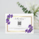 Alegria na beleza da natureza com o nosso Cartão de Resposta para Violetas Roxas Profundas, onde o encanto das violetas roxas profundas encontra a opulência dos sotaques dourados. Personalizável para refletir o seu anúncio exclusivo, este cartão requintado convida os convidados a responder com a sua presença sincera.