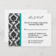 Esta placa RSVP de Turquesa de Teal Damasco Preto 4x5 é perfeita para qualquer casal colocar dentro de seus convites de casamento para seus destinatários responderem com suas informações de R.S.V.P. Estes vêm com envelopes brancos padrão.