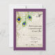 Este é um convite moderno e sofisticado. Apresentando penas Peacock estilizadas, de cor aquosa, num local pintado à mão e fundo pergaminho com a sua escolha de cor de fundo, mostrada aqui em púrpura pavão. VOCÊ TAMBÉM PODERIA GOSTAR DE:
