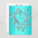 Placa de resposta RSVP do Coração Azul Teal Silver