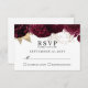 Cartões de resposta de rsvp de casamento botânico moderno e elegante são o perfeito elogio aos seus convites de casamento. Apresentando uma bela design de rosa vermelha escuras e arrojadas com elementos de ouro falsos, esses cartões de resposta podem ser personalizados com suas opções de fontes e cores. Observe que o ouro neste design é um impressão de cor bege amarelo plano e não é uma folha de ouro ou cor real.