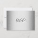 Cartões RSVP no Modelo de Convite. Adequado para todos os eventos e celebrações. Folha Metálica Espetada em Prata Olhe com Texto Preto. Clique em Personalizar para alterar o estilo do texto para corresponder ao seu convite. Qualquer pedido especial, por favor, envie-me um e-mail.