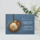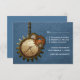 Esta única placa de resposta de casamento Vintage Clock em azul real apresenta relógios e engrenagens antigos de galhardetes de metal pendurados por uma corrente de fio de metal. O fundo tem uma cobertura texturizada de papel e malha que adiciona uma sensação de aflição e desgraça ao design. Esta carta RSVP de casamento, esquisita e ofuscada, seria perfeita para um casamento inspirado em steampunk. Fácil de personalizar, basta adicionar os detalhes do casamento nos espaços fornecidos. Clique no botão "Personalizar a TI" para encontrar opções adicionais de personalização.