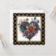 Placa de Rosa vermelha gótica e placa de saudação cardíaca em um quadro dourado em um fundo preto e dourado.