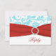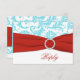 Este cartão RSVP azul e branco floral azul aqua tem uma fita vermelha IMPRESSA e uma fivela de joia IMPRESSA que corresponde ao convite de casamento mostrado abaixo. ALÉM DISSO, se você redimensionar a placa, ou se você alterar fontes, ou o tamanho da fonte, parte do design e/ou texto poderá ser cortada. Tudo será impressão como você vê no seu monitor. Não verei o seu convite, e Zazzle NÃO corrigirá nada (erros de digitação, mal-alinhamento, etc.). O texto e o papel são todos personalizáveis. Se precisar de ajuda para este convite, envie-me um e-mail ANTES de fazer seu pedido. Se você precisar de outros itens correspondentes, envie um e-mail para niteowlstudio@gmail.com.