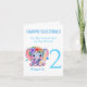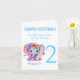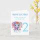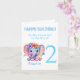 Cartão de segundo aniversário com um animal de elefante com o tema design para raparigas. Bonito e colorido em texto roxo, adicione nome e idade. Modelo segundo cartão de aniversário.