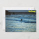 Um surfista dirige uma onda atlântica ao anoitecer na costa da Cornualha do Norte, Inglaterra, Reino Unido.