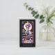 Um cartão de visita exclusivo de especialista em unhas em negrito com estilo de placa de tarot de tecnologia unha. Um mashup de estilo único do tarô e da sua ocupação. Redes sociais, Código QR.