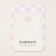 Placa de exibição com um padrão de verificação lilás fofo. Os orifícios de modelo podem ser ajustados ou excluídos, bem como todas as informações de sua empresa. Adicione sua mídia social ou site à parte inferior.