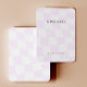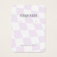 Placa de exibição com um padrão de verificação lilás fofo. Os orifícios de modelo podem ser ajustados ou excluídos, bem como todas as informações de sua empresa. Adicione sua mídia social ou site à parte inferior.