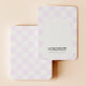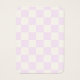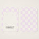 Placa de exibição com um padrão de verificação lilás fofo. Os orifícios de modelo podem ser ajustados ou excluídos, bem como todas as informações de sua empresa. Adicione sua mídia social ou site à parte inferior.