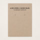 Dê ao seu negócio de joalharia uma aparência profissional, mas natural, com este cartão de exibição de brinco com um fundo de papel kraft rústico e uma simples tipografia. Personalize o texto na parte frontal e traseira do cartão para adequá-lo à sua empresa. Nota: Os círculos são espaços reservados para os brincos, mas só serão impressos no cartão e não cortados.