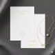 Mostra colares ou pulseiras em uma tela branca nítida, realçada por linhas de ouro refinadas para uma aparência brilhante e butique que fotografa lindamente. Os marcadores impressos sutis mantêm cadeias alinhadas para mercados, boutiques e layshots planos, enquanto o texto editável permite que o nome da marca e o local tomem o palco central. Ideal para fabricantes e vendedores da Etsy, este cartão melhora o valor e a consistência percepcionados entre coleções. O detalhamento dourado é um efeito impresso. Fontes, texto e tamanho podem ser ajustados para corresponder ao estilo de marca.