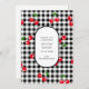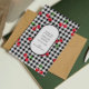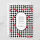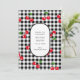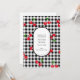 Envie cartões de natal alegres com um cartão de Natal de xadrez de búfalo preto e branco com sotaques de fruta de cereja e tipografia festiva.
