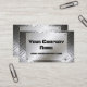 Uma superfície brilhante da placa do olhar do metal no cromo de aço inoxidável do olhar do grunge é um cartão de visita corajoso, original e masculino do olhar. A beira dos parafusos adiciona ao design 3d. O fundo na parte dianteira do cartão é um teste padrão do olhar do metal do diamante. Personalize facilmente com sua própria informação. Use o estilo de pia batismal perfeito da rotulação de preto corajoso com os parafusos no design, ou mude facilmente o estilo de pia batismal e/ou colora-o. O cartão de vista profissional perfeito especialmente para ocupações industriais, da construção e da construção. Mais informação pode ser psta sobre a parte traseira também no mesmo fundo metálico do olhar. Impresso no papel, metal nao real. Um cartão de visita forte que esteja para fora do resto.