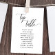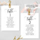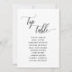 Cartão de lugar para mesa superior elegante com belos detalhes caligráficos manuscritos modernos. Cartão de lado duplo, permitindo que os hóspedes olhem para seus nomes tanto de frente quanto de trás. Espaço livre ao redor lhe dá a liberdade de usar clipes ou furos de socos para exibições suspensas ou usar suportes de mesa ou quadros. Fundo branco e texto a preto. Capacidade de alterar a cor de fundo para outra cor selecionando "Personalizar mais". Você pode editar o design. Aplique as mudanças tanto na frente quanto na parte traseira. Uma placa correspondente com um modelo para o restante dos números de tabela e nomes de convidados também está disponível. Parte da nossa coleção "Modern Elegant Wedding and Events Signage", com uma variedade de produtos coordenadores disponíveis.