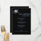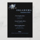 Criado num estilo chic impressionante para o seu evento de concurso ou de almoço. Mostrada em preto clássico em papel de shimmer de qualidade fina, este programa/cartão de menu tem uma coroa de quatro pontos colorida de Baby Blue SMALL no canto superior esquerdo. A maioria do texto no centro. Escolha seu cartão de estilo. Nós criamos a modelo para você, simplesmente mude a informação para a sua, no lado direito da tela, no menu de seleção. Personalize ainda mais se desejar alterando a seleção do papel, as cores do texto ou do texto, as cores de fundo, os estilos de texto ou carregando sua própria imagem. Escolha encantadora para recepções, festas de aposentadoria, festas de concurso, bolas, almoços, eventos, casamentos. Mostrado em preto e azul-bebê.