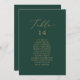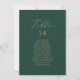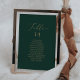 Estes delicados cartões de assentos de mesa verde e ouro são perfeitos para um casamento moderno. A design romântica minimalista apresenta uma magnífica e elegante tipografia amarela ouro champanhe num fundo verde esmeralda com um aspecto simples e limpo. A placa impressão na frente e atrás (lado duplo).