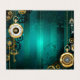 Joias, relógio de ouro com uma corrente de ouro e teclas num fundo textural verde. Estilo Steampunk.
