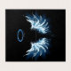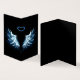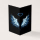 Asas claras, artísticas, de anjo azul sobre fundo preto. Asas de anjo.