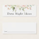 Peça aos seus convidados de chá de panela que escrevam a sua ideia noturna favorita neste simples cartão noturno de data, com flores embebidas em aquarela e verde.