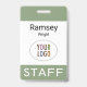 Personalize facilmente este crachá de nome de funcionarios com o logotipo da sua empresa, o nome do funcionário ou outro texto personalizado. É plástico pvc e disponível com um jardim, clipe ou um rolo retrátil. Este é o crachá do nome verde sábio com um design minimalista moderno da MISOOK. Disponível em outras cores e todas as cores são personalizáveis. Nenhuma quantidade mínima de ordem e nenhuma taxa de configuração.