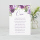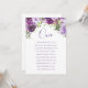 Cartão de placa de mesa editável com sombras de rosas florais de cor d'água púrpura. Personalizar com nomes de convidado e número da tabela.