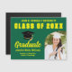 Este moderno cartão de imã de anúncio de graduação de mais velho verde e amarelo com o seu arco de fotos de tendências. Ele apresenta a tipografia clássica do seu nome de faculdade para a classe de 2024 e letras variadas. Personalize com o seu ano de graduação com o script de chic manuscrito e o boné de formando preto para cartões postais de excelente. Adicione os detalhes da sua festa no verso.