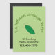 Folha verde com informações comerciais. Substitua a folha gráfica verde pelo logotipo da sua empresa. Acima da folha está uma linha de texto curvado em verde. Abaixo está o lugar para personalizar com endereço e número de telefone em preto. O plano de fundo verde claro também pode ser personalizado.