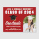 Este moderno ímã de fotos de formando branco e vermelho personalizado apresenta sua fotografia de graduação ao lado da tipografia branca clássica do seu nome de faculdade para a classe de 2025. Personalize com o seu ano de graduação com o script manuscrito preto chic e o boné formando preto para um cartão magnético de anúncio de formando excelente.