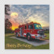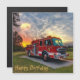 Este cartão magnético do motor de incêndio Feliz Aniversário tem um fundo espantoso.