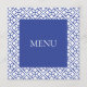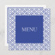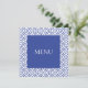 Hospede a parte ou evento de janto perfeito com esta elegante placa de menu de borda azul e branca de dois lados.
