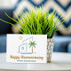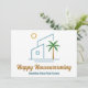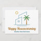 Este cartão da companhia imobiliária tropical traz uma moderna casa azul de praia com uma palmeira costeira legal e sol-ilha. Personalize essas placas de marketing com seu agente e nome comercial real para comprar clientes domésticos ao longo da costa.