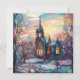 Uma carta charmante com a imagem de uma igreja de inverno em estilos de vidro manchado.