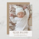 Um anúncio de nascimento de uma foto de bebê fotônica moderna para enviar aos seus amigos e familiares. Substitua este espaço reservado de amostra por sua própria adorável foto de recém-nascido, adicione nome, data de nascimento e estatísticas e seja bem-vindo com nomes de membros da família.