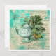 Colagem bonito apresenta a ilustração do bule de chá em tons de menta com folhagem e borboleta verde sobre o fundo da efêmera angustiada do aqua pastel