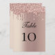 Rosa dourando brilho nestes cartões de números da mesa de casamento bonito. Veja nossos produtos correspondentes em nossa coleção de casamento do Glitter de Drivers Dourada do Rosa: https://www.zazzle.com/collections/rose_gold_dripping_glitter_wedding-119432629362020576