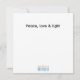 Belo blues e tipografia divertida nesta placa plana moderna de Chanucá com a mensagem de fundo "Peace, love & light" Dimensions: 5,25" x 5,25" Alta qualidade, cor de cheio, Impressão de impressão com sangramento de cheio em ambos os lados sem custo adicional O papel é fácil de escrever e não borra Made e impresso nos EUA
