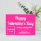 Feliz dia do Namorados! Um feriado adorável para comemorar este fevereiro e anunciar também seu negócio ou promover seu nome de marca. Placa simples de pequeno porte que você pode personalizar para colocar a marca de sua empresa e com a saudação do Namorados. Personalize-o e use-o para saudar seus clientes ou clientes neste dia de Namorados e como material de marketing para anunciar sua empresa ou promover seu nome de marca. Você também pode usá-lo como acessório do material de embalagem do seu produto. Cartão personalizável que você pode usar para criar reconhecimento de nome de marca. As cores design são textos brancos em fundo cor-de-rosa. Para personalizar este cartão, carregue o logotipo da sua empresa, digite seu nome, endereço, número de telefone, e-mail e site ou a página de mídia social da sua empresa. Verifique a aparência nos lados frontal e traseiro após carregar o logotipo e os textos de digitação. Se a aparência lhe agrada, você pode colocar seu pedido agora. Se você precisar redimensionar e mover o logotipo e os textos para o ajustado nesta placa ou no tamanho que você escolherá, mude na ferramenta design. Você também pode alterar a cor do plano de fundo, a cor da fonte e o estilo da fonte na ferramenta design. Feliz dia do Namorados! Desejando mais vendas neste feriado.